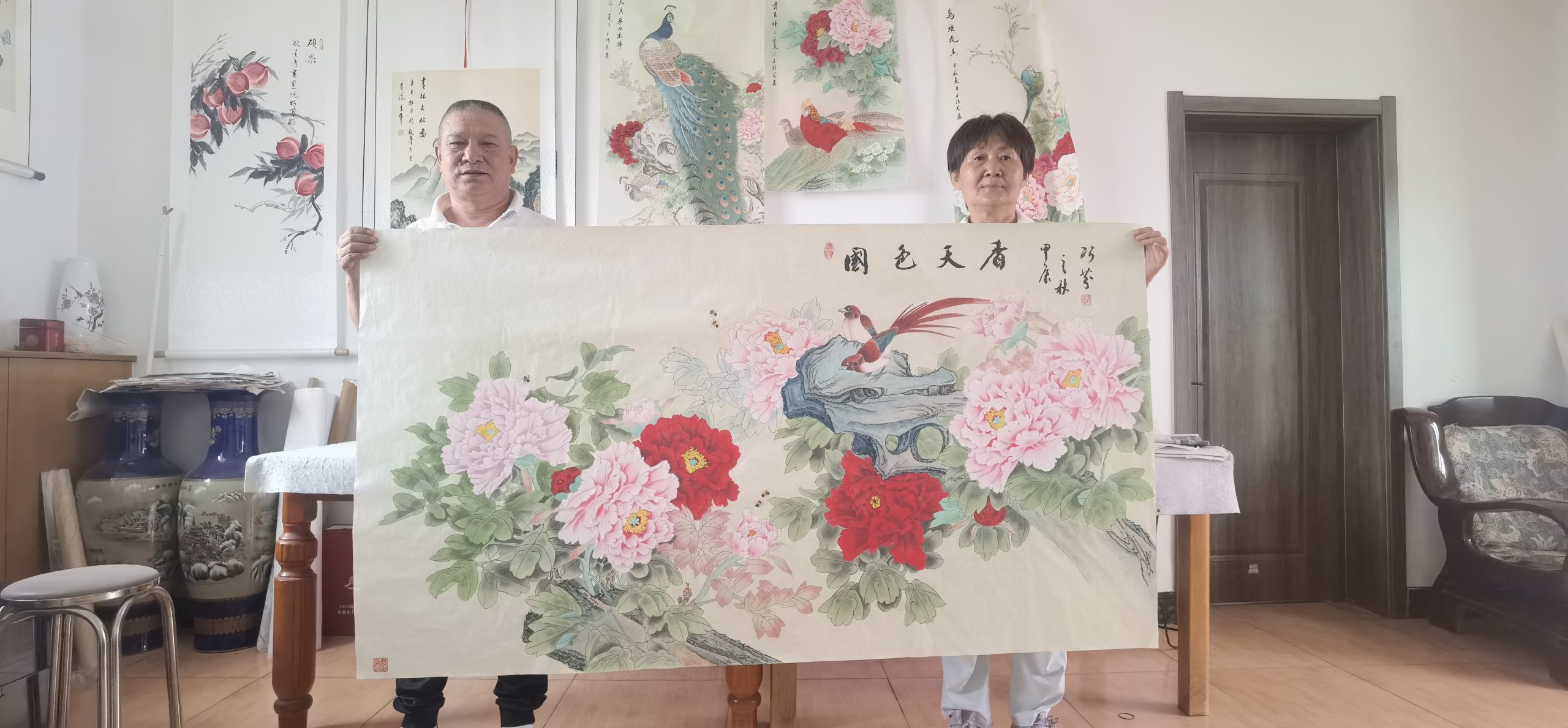 2024年9月20日 李迎九老师到蠡县拜访著名书画家王巧芬老师,花王牡丹象征富贵、吉祥、繁荣昌盛…